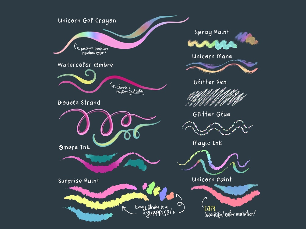 23 super-glittery, colorful brushes designed for digital painting in Procreate!